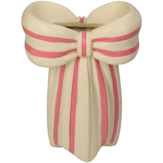 STRIKJES! Deze roze polyresin vaas in boogvorm heeft een afmeting van 7x14x19cm, perfect voor een speelse en stijlvolle uitstraling. De vaas is niet heel groot maar door zijn vorm heeft ie echt wel impact in jouw huis.